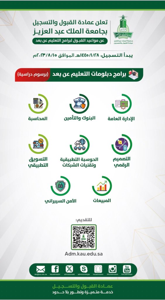 فتح باب التقديم في برنامج دبلوم الأمن السيبراني الذي تقدمه جامعة الملك عبدالعزيز إضافة إلى عدد من الدبلومات الأخرى كما هو موضح أدناه